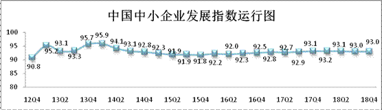 2018年四季度中國中小企業(yè)發(fā)展指數(shù)(SMEDI)為93.0,與上季度基本持平,繼續(xù)低位運(yùn)行。分行業(yè)指數(shù)5升3降,分項(xiàng)指數(shù)3升2平3降,下降的面比上季度有所收窄。2018年11月1日,習(xí)近平總書記召開民營企業(yè)座談會(huì),給民營企業(yè)吃了“定心丸”。一系列利好政策的出臺(tái),提振了民營企業(yè)發(fā)展的信心,但考慮到政策落地尚需時(shí)日,且2019年國內(nèi)外發(fā)展形勢(shì)更加復(fù)雜嚴(yán)峻,不穩(wěn)定不確定因素增多,經(jīng)濟(jì)下行壓力加大,因此,中小企業(yè)發(fā)展?fàn)顩r的改善還需要一個(gè)過程。